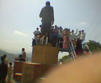 यहाँ से बांध का नज़ारा बडा ही मनमोहक है. सामने ही सरदार पटेल की प्रतिमा लगी है, जो शायद 12-15 फूट उँची होगी. प्रतिमा इस तरह से स्थापित की गई है कि सरदार का मुँह बांध की तरफ रहता है, मानो वे अपने सपने को साकार होते हुए देख रहे हों.